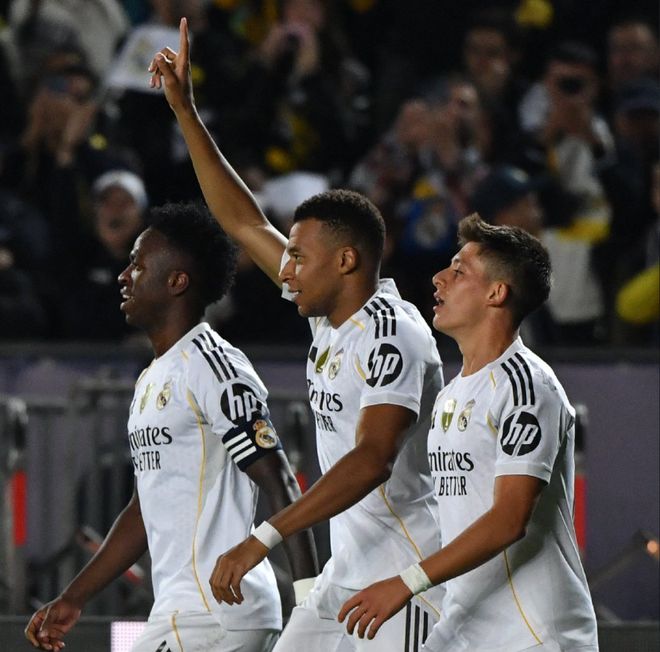 今年的欧冠联赛产生了多支新军,其中来自哈萨克斯坦的阿拉木图凯拉特直接成为了欧冠历史上最为东边的球队;这意味着欧洲球队来到这个客场就需要长时间的长途跋涉。北京时间10月1日凌晨,欧冠联赛第二轮,阿拉木图凯拉特迎来主场首秀,对手是欧冠15冠王皇马;姆巴佩上演帽子戏法,卡马文加与迪亚斯先后进球,皇马5:0轻松获胜。皇马原本联赛开局6连胜,结果上轮西甲被马竞胖揍了一个2:5,还弄丢了西甲榜首;从马德里到哈萨克斯坦,皇马飞了10个小时。不过阿隆索依然遣出多位主力,维尼修斯、马斯坦托诺、姆巴佩联手进攻三叉戟;居莱尔、楚阿梅尼、塞瓦略斯形成中场三人组;劳尔-阿森西奥、赫伊森、阿拉巴、弗兰-加西亚组成防线,库尔图瓦把守球门。皇马全队身价为14亿欧,而凯拉特只有1273万欧,双方相差13.8亿;加上双方实力的确存在着巨大差距,皇马上半场踢得较为松散。第13分钟,维尼修斯就在左路跑出单刀,但直接挑射打偏了;第17分钟,弗兰-加西亚倒三角回传,居莱尔跟进射门被后卫挡出底线;第20分钟,居莱尔肋部直传,姆巴佩调整兜射被卡尔穆尔扎扑出。第25分钟,阿拉木图凯拉特后卫解围失误,马斯坦托诺断球趟入禁区被放倒,主裁判判罚了点球,姆巴佩轻松主罚命中,1:0!姆巴佩收获欧冠第56球,超越了托马斯-穆勒的进球数。随后维尼修斯和居莱尔的外围远射被卡尔穆尔扎化解;第44分钟,姆巴佩底线穿裆过人后兜射,皮球偏出立柱。下半场换边再战,第52分钟,库尔图瓦后场大脚长传,姆巴佩发挥跑车速度,一个加速甩开了索罗金防守形成单刀挑射入网完成了梅开二度,2:0!第57分钟,姆巴佩与维尼修斯2人一个传切配合就搅乱了对手的防线,维尼左侧突破送到门前,面对出击的门将,姆巴佩却意外将球踢歪了。第61分钟,阿拉木图凯拉特角球进攻,路易斯-马塔外围凌空抽射,好在库尔图瓦注意力很集中侧身扑出这次极具威胁的远射;随即维尼修斯长传发动反击,姆巴佩直传,马斯坦托诺小角度推射被卡尔穆尔扎扑出。第67分钟,皇马险些为自己的松散付出代价,格罗梅科禁区内接球被塞巴略斯轻微带倒,裁判立马吹罚点球,VAR及时介入,裁判改判没有点球;阿隆索之后也用迪亚斯和罗德里戈换下了毫无状态的马斯坦托诺和维尼修斯。这次换人立马起到了效果,第73分钟,罗德里戈左路轻松突破过掉5人后横敲,居莱尔顺势回做,姆巴佩迎球怒射入网,3:0!姆巴佩完成了帽子戏法,新赛季至今代表皇马踢了9场比赛,姆巴佩便贡献了12球,五大联赛仅次于凯恩。3球在手,阿隆索提前鸣金收兵,姆巴佩提前被换下,卡马文加和贝林厄姆2大刚刚伤愈的伤员替补出场找找比赛感觉。第83分钟,罗德里戈左路又是一次轻松的抹过2人防守后下底传中,卡马文加冲顶头球锁定胜局,4:0!替补出场10几分钟,罗德里戈便参与了2粒进球,突破也全部成功;在状态上可谓是完胜维尼修斯。伤停补时阶段,迪亚斯将比分定格在了5:0!皇马轻松获胜,用一场大胜走出上周末马德里德比惨败的阴霾。