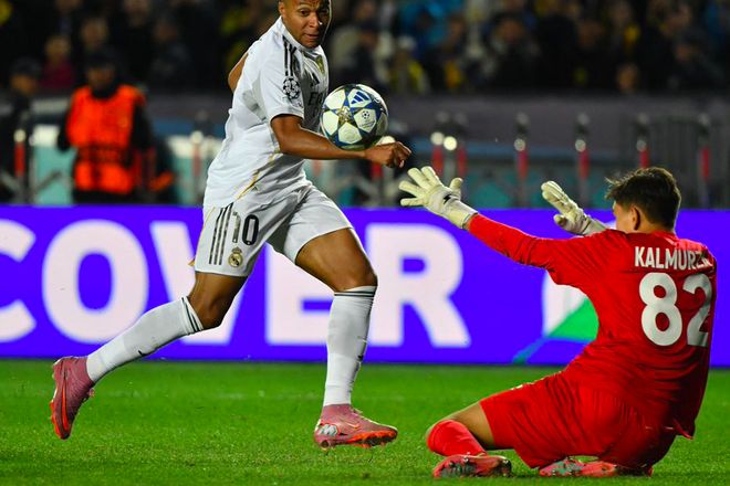 北京时间10月1日凌晨,新赛季的欧冠联赛进入到第二轮的较量,皇马远征6100公里外哈萨克斯坦,对阵阿拉木图凯拉特。全队总身价1200万的凯拉特是上赛季哈萨克斯坦联赛的亚军。本赛季的欧冠资格赛,凯拉特历经4轮8场,首次晋级正赛。首轮做客葡萄牙,凯拉特实力有限,1-4输球。总身价14亿欧元的皇马欧冠首轮2-1战胜马赛,一度取得联赛+欧冠的7连胜。但是上周末西甲的马德里德比,皇马在2-1领先后连丢4球,2-5完败给马竞。开场之后,凯拉特借助主场之利,踢得极具侵略性,甚至一度占据了场面上的优势。比赛踢了10分钟,凯拉特完成3次射门,皇马则是0射门。当皇马在后场控球时,凯拉特的6名球员压过半场,这也赢得了主场球迷的满堂彩。第14分钟,皇马的第一次射门就差点转化为进球,维尼修斯反击中形成半单刀的机会,他的搓射稍稍打偏。15分钟过后,皇马夺回了应有的优势,第23分钟,凯拉特后卫大脚解围,皮球踢到中间,另一名后卫头球顶向球门方向,马斯坦托诺形成单刀,门将出击将其放倒。皇马获得点球,姆巴佩操刀主罚,稳稳命中,皇马没有费多大力气,就取得领先。凭借这一个点球,姆巴佩也成为皇马队史首位包揽赛季欧冠前3球的球员,创造历史。领先后的皇马愈发游刃有余,凯拉特只能全力防守,越踢越被动。皇马则是打得条理清晰,掌控局面。第35分钟,马斯坦托诺试图原地摆脱防守,兜射远角,皮球被后卫挡了一下,稍稍偏出。第44分钟,姆巴佩的插上和穿裆过人展现顶级水准,之后的射门差之毫厘。半场结束,皇马仅仅1-0暂时领先。皇马完成了9次射门,凯拉特也有5次射门,令人刮目相看。第52分钟,姆巴佩利用速度强行超车,单刀破门,库尔图瓦还刷了一个助攻。6分钟后,姆巴佩还有上演帽子戏法的机会,他的停球和传球,以及维尼修斯的喂饼都足够舒服,姆总却错失单刀。第68分钟,阿拉木图凯拉特曾经获得点球,主场球迷一片狂躁。格罗米科突入禁区,塞巴略斯回防,格罗米科倒地,VAR介入后认为格罗米科有主动碰瓷的动作,点球取消。第73分钟,罗德里戈如穿花蝴蝶一般过人后传球,姆巴佩抓住机会,上演帽子戏法。新赛季两场欧冠,姆总已经打进5球了。加上联赛的8球,姆总9场比赛狂轰13球。第83分钟,罗德里戈连续过人拍案叫绝,之后的传中助攻卡马文加头槌破门。补时的最后时刻,同样是替补登场的迪亚斯斜射破门。最终,总身价14亿欧元的皇马客场5-0完胜阿拉木图凯拉特,迎来欧冠2连胜。新赛季联赛+欧冠9场比赛8胜1负。