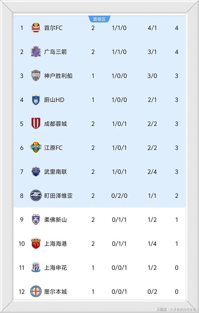 其一、蓉城在主场打进亚冠历史上首个进球;其二、成都蓉城拿下亚冠首场胜利,获得首个3分。一场堪称伟大的1-0,一场来之不易的平局,亚冠最近积分榜火热出炉:排名榜首的是首尔FC,2战1胜1负积4分,排名第二的是广岛三箭,同样积4分;成都蓉城1-0取胜之后,积3分排名第5;中超卫冕冠军上海海港以1分位列第10位。再次祝贺两支中超球队拿分!