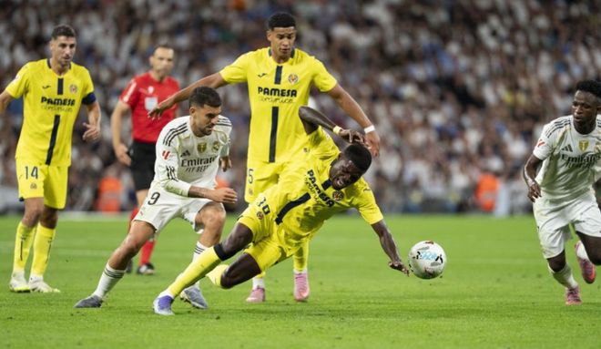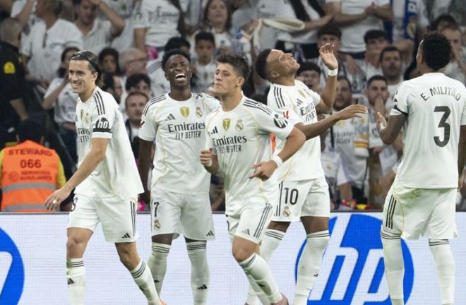 北京时间10月5日凌晨,2025-26赛季西甲联赛第8轮再赛4场。经过一番鏖战,毕尔巴鄂竞技主场2:1小胜马洛卡,瓦伦西亚客场1:2不敌赫罗纳,皇马主场3:1轻取比利亚雷亚尔,莱万特客场2:0完胜皇家奥维耶多。皇马上轮客场惨败不敌马竞,全胜被终止,榜首也被巴萨抢走。今天回到主场对阵第3的比利亚雷亚尔,皇马是铆足了劲压着黄潜猛攻,毕竟要是再输球,排名还要继续下跌。开场后皇马完全压制黄潜,只不过他们迟迟未能把握机会,第6分钟,姆巴佩禁区左侧前沿巧妙直塞,居莱尔禁区内接球转身扫射打偏了。第19分钟,姆巴佩强行突入禁区左侧倒地大力卧射,门将特纳斯奋力将球扑住。2分钟后,姆巴佩又突入禁区左侧,这次他倒三角回传做球,马斯坦托诺点球点处获得绝佳机会,然而他左脚大力推射打了飞机。场面被动的比利亚雷亚尔上半时尾声阶段倒是差点率先进球,他们后场反击,科梅萨尼亚中场策应精妙直塞,奥卢瓦塞伊高速插上拿球突入禁区获得半单刀良机,只不过他推射被门将库尔图瓦神勇扑出。易边再战皇马继续加强进攻,开场仅1分钟,皇马右路压上大范围转移,姆巴佩禁区弧顶处策应头球摆渡顶到左侧,维尼修斯插上拿球,非常轻松的过掉穆里尼奥后杀入禁区,小角度大力抽射,皮球直入球门近端死角,皇马1:0打破僵局。第68分钟,维尼修斯又是左路强攻,这次他禁区边上突破马林的防守往禁区里冲,马林推了一下,维尼修斯应声倒地,主裁吹罚了点球。维尼修斯操刀主罚一蹴而就梅开二度,皇马2:0领先。2球领先的皇马后防有些松懈,仅仅过了2分钟,比利亚雷亚尔左路压上,盖耶禁区角上横传中路,禁区弧顶处完全无人的米考塔泽接球从容调整后大力抽射,皮球直入球门右侧死角,比利亚雷亚尔1:2快速扳回一球。第77分钟,穆里尼奥又一次被维尼修斯硬突生吃,他无奈拉倒维尼修斯吃到第2张黄牌被罚下场。多一人的皇马很快抓住机会,3分钟后,皇马前场中路压上,贝林厄姆反抢断球,姆巴佩禁区弧顶处接球斜塞右侧,迪亚斯插上禁区右侧策应再将球传回中路,姆巴佩跟进抢点直接推射半空门得手,皇马3:1锁定胜局。积分榜方面,皇马及时止住颓势后,先赛的他们超过巴萨2分夺回榜首,输球的比利亚雷亚尔则是还差巴萨3分仍然排在第3。毕尔巴鄂竞技前段时间战绩相当的惨淡,双线1平5负连续6场不胜,今天终于是赢球止住颓势,在那时超过马竞1分升至第5。射手榜方面,姆巴佩传射,维尼修斯双响,今天两人均造2球,姆巴佩8轮打入9球继续稳居榜首,维尼修斯则是和今天打入一球的艾永5球并列第3。阿尔瓦雷斯差姆巴佩3球排在第2,居莱尔,拉菲尼亚,丹朱玛等人3球刚好挤入前十。