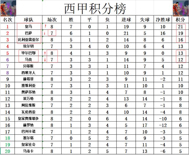西甲最新积分战报姆巴佩维尼修斯各造2球皇马止颓势超巴萨登顶