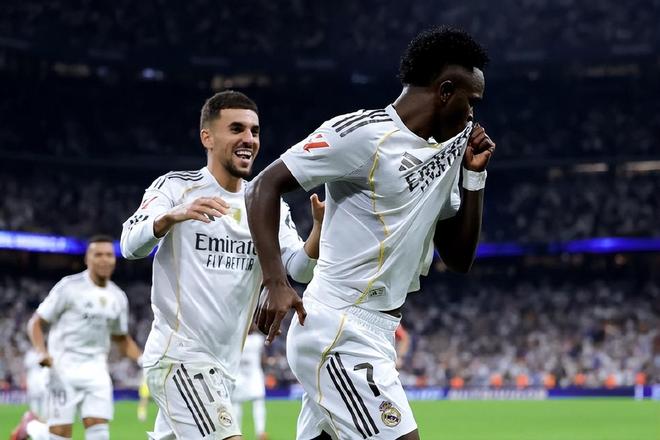 第81分钟,贝林厄姆前场倒地反抢成功,姆巴佩顺势分到右路的迪亚斯,后者又无私传给姆巴佩,皇马10号没有浪费机会撞射扩大优势,3:1!姆巴佩刚刚获得9月份西甲最佳球员称号,他也延续了进球状态;连续9场比赛取得进球外加10场比赛收获14球,仅次于18球的凯恩。最终皇马3:1拿下了3分,多赛1场反超巴萨重夺西甲榜首。