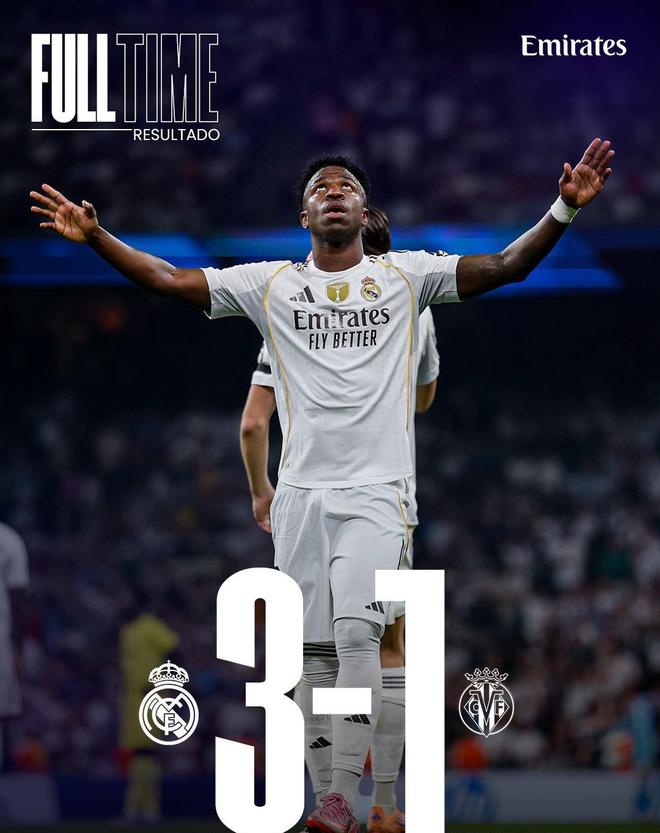 维尼修斯双响、姆巴佩破门,皇马3-1力克比利亚雷亚尔登顶西甲2025年10月5日凌晨,西甲第8轮,皇家马德里在主场伯纳乌球场以3-1战胜比利亚雷亚尔,凭借维尼修斯的梅开二度和姆巴佩的进球,球队豪取各项赛事主场八连胜,并以21分(8战7胜1负)暂时登顶积分榜,领先少赛一场的巴塞罗那2分。此役,皇马在主帅阿隆索的带领下志在全取三分。比赛伊始,主队便凭借维尼修斯、姆巴佩、居勒尔和马斯坦图诺等攻击手的灵活跑动,持续向“黄色潜水艇”的防线施压。然而,上半场皇马虽创造出多次良机,但居勒尔和马斯坦图诺接连错失得分机会,客队防线顽强顶住攻势。反观比利亚雷亚尔,也曾由奥卢瓦塞伊获得绝佳机会,但被门将库尔图瓦神勇扑出。半场结束,双方0-0握手言和。易边再战仅两分钟,皇马便打破僵局。维尼修斯突破后射门,皮球击中对方后卫科梅萨尼亚变线入网,皇马1-0领先。第69分钟,维尼修斯在禁区内与拉法·马林对抗后倒地,裁判判罚点球。姆巴佩主动将主罚权让给队友,维尼修斯稳稳命中,完成梅开二度,比分变为2-0。第73分钟,比利亚雷亚尔由乔治·米考塔泽一记势大力沉的远射直挂死角,将比分扳为1-2,一度燃起反扑希望。但仅仅四分钟后,客队中场圣地亚哥·莫里略因对维尼修斯犯规,领到本场第二张黄牌被罚下场,球队陷入十人应战的不利局面。第81分钟,皇马锁定胜局。姆巴佩与布拉欣·迪亚斯完成精妙配合后冷静推射破门,将最终比分定格为3-1。这是姆巴佩近10场比赛中打入的第14球,延续了火热状态,也实现了连续9场在各项赛事中取得进球的壮举。此役过后,皇马一扫此前马德里德比负于马竞的阴霾,强势反弹。尽管比赛中关于罗德里戈一次禁区内疑似被犯规未获点球的判罚引发争议(皇马官方电视台RMTV认为接触明显,应判罚点球),但球队凭借强大的整体实力和关键球员的出色发挥,最终全取三分,稳居联赛榜首。