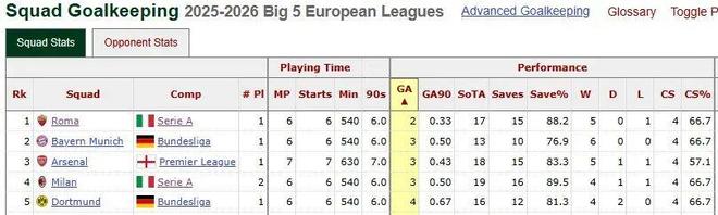 五大联赛开战两个月的时间,拜仁慕尼黑成为唯一保持全胜的球队。他们在6轮德甲比赛中狂轰25球仅丢3球,攻防两端均展现出了冠军级球队的风采。在进攻层面,拜仁在凯恩的带领下问鼎第一。但论防守质量,不少球迷肯定会想到阿森纳。开局接连迎战曼联、利物浦、曼城、纽卡等强敌,枪手7场比赛仅丢3球,展现了“全欧第一防线”的水准。不过,若从数据层面分析,五大联赛最稳的防线并不属于阿森纳,而是属于意甲大黑马,排名第2的罗马队。加斯佩里尼执掌的罗马6轮比赛仅丢2球,防守效率冠绝欧洲;紧随其后的则是拜仁慕尼黑、阿森纳和AC米兰,各失3球。上赛季,罗马队一度濒临降级,老帅拉涅利紧急复出“补锅”,最终将罗马带到了第5的位置。现如今,罗马在冠军教头加斯佩里尼麾下越战越勇,已经高居意甲第2位。这支由加斯佩里尼带队的罗马采取以守为主的姿态,在进攻线尚未完全吃透加斯佩里尼的战术理念之前,罗马选择用最小代价守住胜果,而他们至今做得非常出色。不过,他们同样能在丢球后迅速回应,正如在佛罗伦萨的那场比赛所展现的那样。自2025年以来,26岁的塞尔维亚门将斯维拉尔在26场意甲比赛中仅丢13球。除了他,罗马后防线上的曼奇尼、恩迪卡和切利克也是这条铁血防线的代表人物,6轮仅丢2球归功于他们的默契协作。中场方面,科内、克里斯坦特以及两翼球员组成的屏障,在压迫对手方面同样发挥了关键作用。据统计,罗马是五大联赛球队之中逼抢力度最大的球队。“在足球里,一切都从进攻开始。当你在前场具备威胁、球能流动起来时,其他方面也会随之改善。我们还在调整,但有些球员表现极其出色。斯维拉尔、后防线、科内和苏莱是我们目前能站在顶端的原因。”这是加斯佩里尼在接受《罗马体育报》采访时,对球队进攻与整体表现的评价。加斯佩里尼清楚,如今的这支罗马队只是防守稳固,但球队的进球数和创造机会的能力仍需提升。。目前,罗马在“预期进球值”排行榜上仅列第十,数值为6.95。在防线表现近乎完美的情况下,接下来加斯佩里尼就该轮到给进攻端提速了。只有这样,罗马才能真正配得上欧冠席位。‘