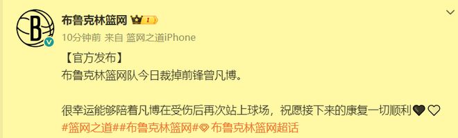 球迷也算是合理怀疑吧?因为如果把时间往前推你就会发现,篮网队试训曾凡博不得不让人觉得就是一场精心谋划的安排。8月初的时候篮网给曾凡博提供了合同,紧接着8月中旬篮网对阵太阳队的两场中国赛开始售票,9月23日双方正式签约短合同,10月12日中国赛结束,然后仅仅相隔3天,篮网官宣裁掉他。通过梳理这样的时间线,是不是很容易让人觉得篮网队签约曾凡博的目的就是为了中国赛服务呢?