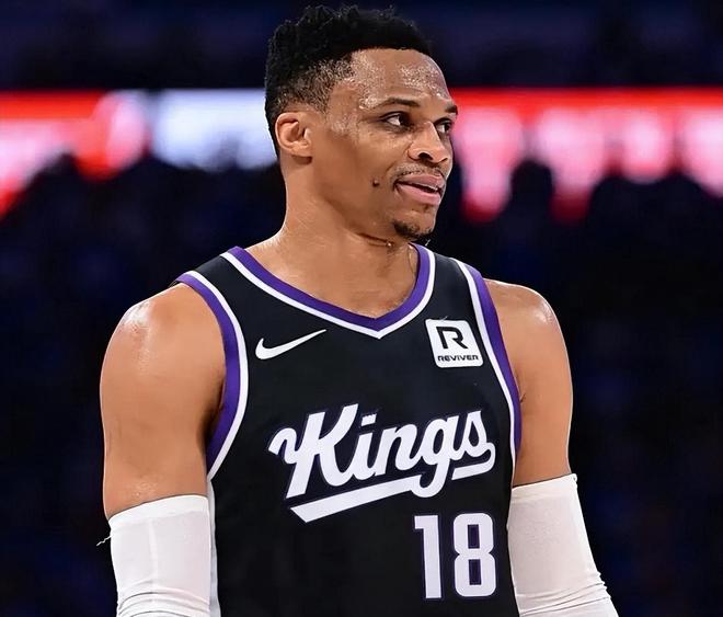 NBA历史75大超巨,也是9届全明星球员!新赛季是威少生涯第18季,国王是他近7年效力的第7支球队,不经意间凑齐了彩虹球衣。据统计,威少成为