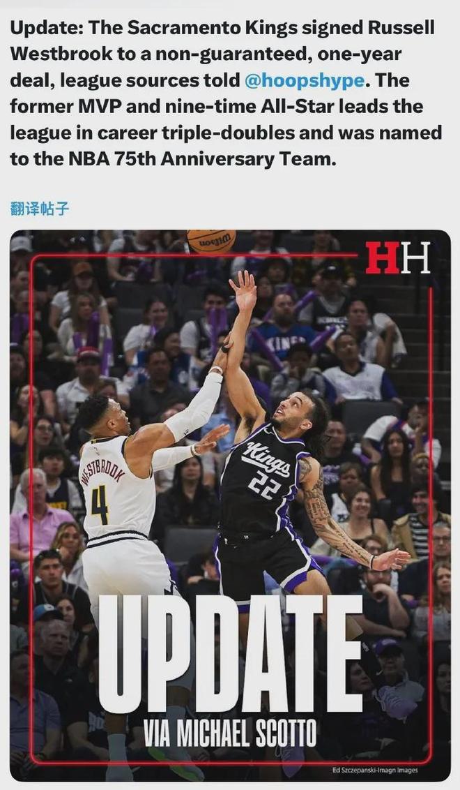 值得一提的是,据名记Scotto报道,威少与国王签下的只是一份无保障一年价值360万美元的合同......意味着国王可以随时裁掉威少,并且无需支付任何费用。