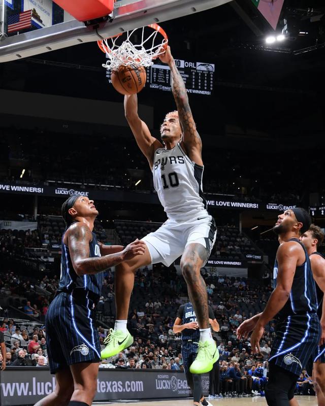 马刺的九号秀索汉第一年打得很有活力,打球也很有灵性有种万金油的感觉。但第二个赛季文班来了之后,马刺让索汉打了一段时间的控卫,从这个时候开始索汉在场上的位置就不停在变,而索汉也仿佛适应不了任何位置。上个赛季打完,索汉可以说不进反退,没有三分投射,没有自主进攻,长处只剩下了空切和外线防守。加上第三年频繁的受伤,索汉在马刺的戏份更少了。