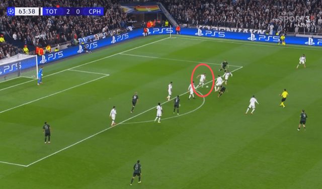 热刺vs哥本哈根一役,第64分钟,范德芬上演超级奔袭表演:热刺后场断球,大禁区线上范德芬得球,荷兰后卫带球一路狂奔,面对哥本哈根5名防守球员的围追堵截,依然直线加速冲刺。