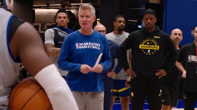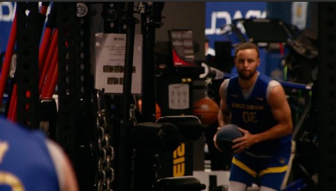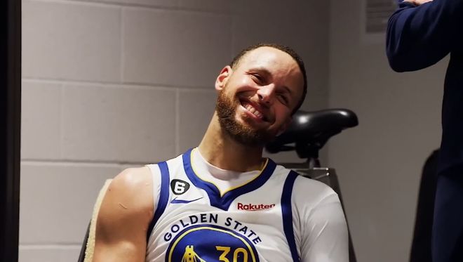 同样失眠的库里,与追梦交换了彼此的看法。谈话结束后,追梦准备来一场赛前动员大会,激励团队。但罕见的是,库里却阻止了追梦,他决定亲自承担这个角色。
