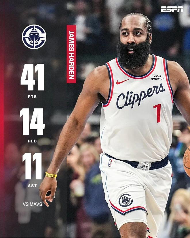 大概是什么概念呢?这场比赛的哈登:——得分、篮板均为赛季最高——快船队史第1次40+三双——NBA史上最老的40+三双(36岁81天)——个人生涯第17次40+三双,历史第二(第一是罗伯特森22次)——时隔4年半的又一次40+三双,上一次还是2021年3月,当时哈登还在篮网,面对步行者单场拿下40分10篮板15助攻