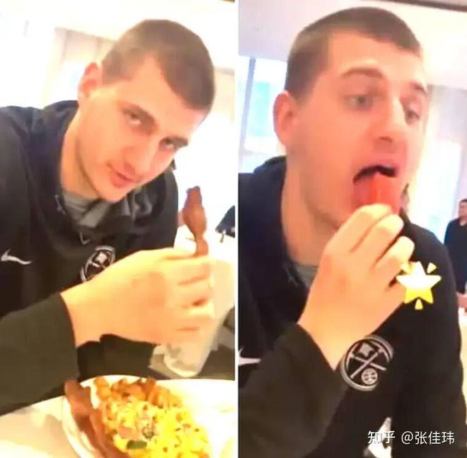 ——第四年第三个常规赛MVP,上季场均30分13篮板10助攻,本季场均30分13篮板11助攻。17场10个三双,9个扣篮。爱不爱扣和能不能扣,两回事。2024年他分享过早餐,说有5000卡路里。具体吃的?“吃的:5个鸡蛋。火腿、培根、奶酪、菠菜。燕麦片、山核桃、杏仁、蓝莓、蜂蜜。”“喝的:浆果、香蕉和一点苹果汁摇匀当饮料。”分量很足,但没啥垃圾食品。分享早餐时,他这样: