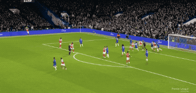 下半场开始仅仅3分钟,少打一人的切尔西,利用阿森纳的方式,攻破了阿森纳的球门。詹姆斯开出角球,查洛巴前点后蹭全凭感觉,切尔西取得领先。