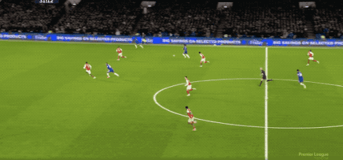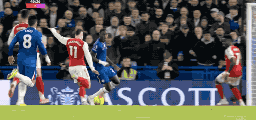 直到第12分钟,本场比赛才出现了第一次的射门,接到埃泽的妙传,萨卡起脚怒射,桑切斯反应迅速,双腿一并,将球挡出。