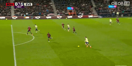 上咪咕独家看英超第80分钟,格拉利什射门,皮球击中后卫折射入网,埃弗顿1-0