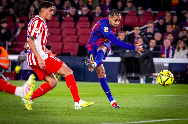 第24分钟,佩德里送出助攻,朗格莱拖在了后面,拉菲尼亚打进复出后的首个进球,两队回到同一起跑线。