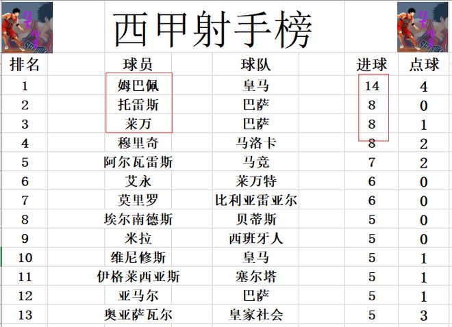 射手榜方面,姆巴佩14球继续领跑,莱万今天本来有机会缩小差距,但是点球都没有罚进。托雷斯打入锁定胜局一球后,倒是追上了莱万,他们和阿尔瓦雷斯并列第2,落后姆巴佩6球。亚马尔没有进球,还是和维尼修斯,奥亚萨瓦尔等人5球刚好挤入前十。相关资讯