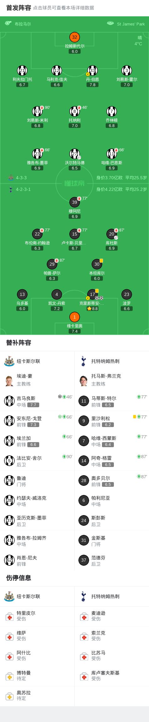 第71分钟,吉马良斯禁区左路推射远角破门,纽卡1-0热刺