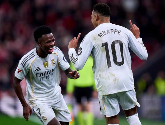 第25分钟毕尔巴鄂竞技从左路打穿皇马防线,吉鲁泽塔禁区内的大力抽射,被库尔图瓦神勇扑出,4分钟之后,贝伦格尔的绝佳单刀机会,又被库尔图瓦化解,第33分钟和第38分钟,维尼修斯也连续浪费良机,一次射门中柱,一次单刀被扑,不过半场结束之前,姆巴佩头球助攻卡马文加再下一城,帮助皇马带着2球领先,回到了更衣室。