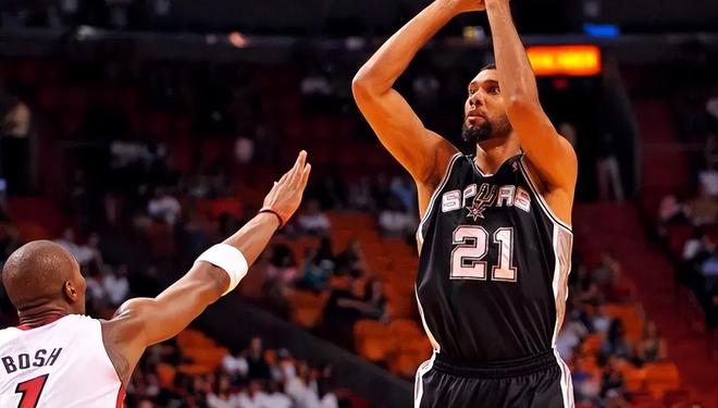 原因二:战术价值多元,得分不值一提在马刺的战术体系之内,邓肯承担着非常多元化的战术任务。进攻端,他是球队的高位策应轴,很多进攻战术都是由他这点发起。而在防守端,邓肯直接化身内线屏障和篮板守护者的身份。他的整个生涯,场均能够贡献10.8篮板、2.2封盖,4次入选最佳防守一阵。对于这样攻防一体的超巨球员,得分显然是他价值的一个附属品。