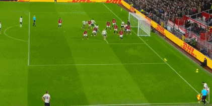 下半场回来曼联继续掌控场上局势,第55分钟依然是战术角球攻势,迪亚洛横传中路,姆伯莫劲射被挡出;第58分钟,卡塞米罗与迪亚洛传切配合后外围突然起脚,达洛特在射门路线上将球拦下顺势扫射入网,1:0!第72分钟,姆伯莫右路个人能力切入禁区在托迪博的干扰下倒地,库尼亚跟进大力抽射被挡出底线。