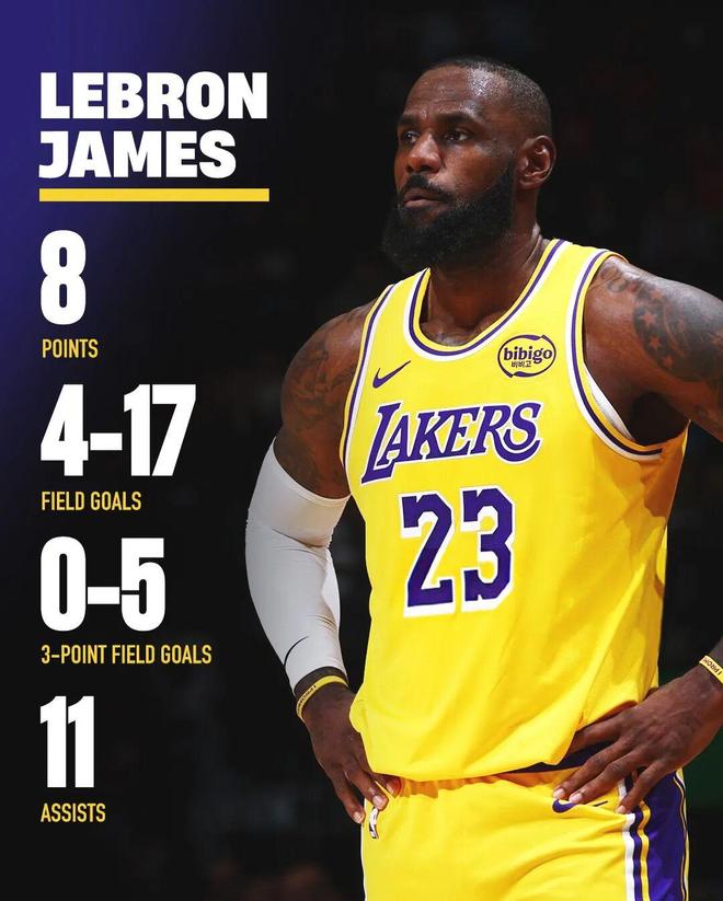 再往前对阵独行侠,虽然湖人赢了,但詹姆斯也只得到13分,其中前三节9分,第四节才完成得分上双。再再往前,詹姆斯本赛季首秀,全场12助攻非常出色,但也只得到11分,当时也是下半场才有惊无险地完成了得分上双。上面这些比赛,放在詹姆斯生涯可能一两个月才会出现一次,本赛季才打了5场,詹姆斯就已经有3次得分不足15分,终于第6场,该来的还是来了。