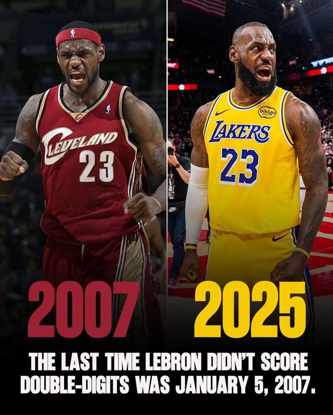 然而,这场比赛的詹姆斯…原以为,东契奇不在,詹姆斯说不定能冲一下本赛季的第一次30+,结果全场下来,詹姆斯投篮17中4,三分5中0,没有拿到一记罚球,只得到8分。是的,詹姆斯的连续1297场得分上双纪录在今天终结了,他上一次得分不上双还要回到2007年,现役有99%的球员还没有进入NBA。