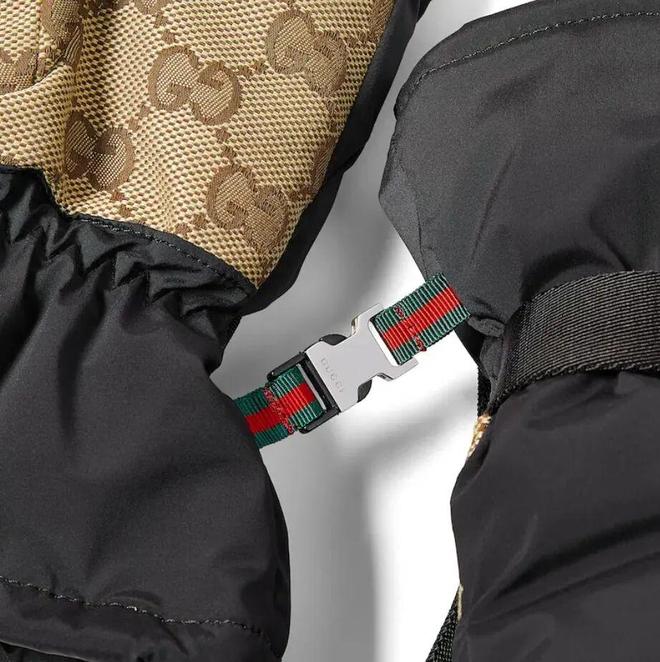 GUCCI 推出首个冬季运动服系列 Gucci Altitude,将出众性能与典藏元素巧妙融合。这款夹绒手套采用黑色织物面料匠心打造,缀饰米色和深棕色GG织物面料饰片,保暖有型两不误。