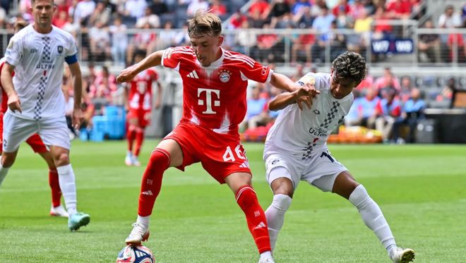 德甲正对其冉冉升起的新星保持高度关注,这位年仅17岁的天才他已展现出跻身世界顶级行列的潜质,拜仁慕尼黑的伦纳特·卡尔在进攻端表现出色,并从容地应对这一切,在进攻端从容驾驭各类挑战。2024/25赛季,他在这家巴伐利亚俱乐部的青年队中大放异彩——为U17和U19梯队攻入34球,当时几乎所有人都坚信,卡尔必将迅速在德甲赛场崭露头角。尽管天赋异禀,这位身高1.70米的进攻型组织者仍需在德甲高强度的对抗环境中,与一众足坛球星同台竞技,证明自己的实力。此外,那些见证过他表现的人早已断言,这位来自下弗兰肯行政区的少年有望成为新一代阿尔扬・罗本或弗兰克・里贝里,效仿这两位俱乐部传奇球星与世界巨星的压力也随之而来。今年夏天在美国举办的世俱杯上,卡尔迎来了拜仁一线队首秀。事实上,从那以后,他便始终展现出沉稳自信的赛场气质,这位天生的足球运动员一心想要彰显自己的场上天赋。“我的优势之一是不惧怕任何对手,无论他们年龄多大,”卡尔在近期接受德国足协(DFB)采访时表示,“当然,我尊重每一位对手,但我总会努力踢出自己的正常水平,这是展现自身实力的最佳方式。”