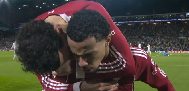 利物浦排出4231阵型。埃基蒂克顶在最前面。加克波、维尔茨和索博斯洛伊的进攻组合联袂出击。琼斯和赫拉芬贝赫搭档双后腰。凯尔凯兹、科纳特、范戴克和布拉德利4后卫首发出战。阿利松担任首发门将。伊萨克、萨拉赫、小基耶萨和麦卡利斯特坐在替补席待命。比赛刚开始不久,利兹联就创造出了机会。奥卡福尔在禁区前沿起脚低射,皮球稍稍偏出右侧立柱。第16分钟,琼斯在禁区前沿兜射远角,皮球击中了横梁弹出,太可惜了。5分钟后,利物浦获得禁区外任意球机会。索博斯洛伊主罚,他直接射门,结果踢高了。随后,范戴克回传球出现失误,幸好没有造成丢球。