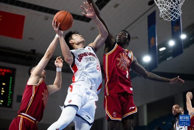 12月7日,山西汾酒队球员刘传兴(左)在比赛中进攻。新华社记者 肖艺九 摄