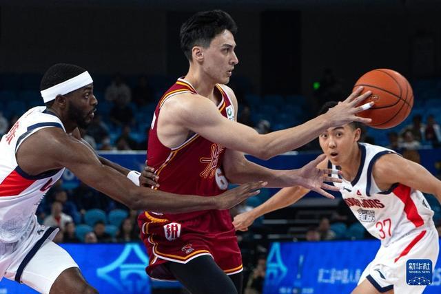 12月7日,山西汾酒队球员于米提(中)在比赛中传球。新华社记者 肖艺九 摄