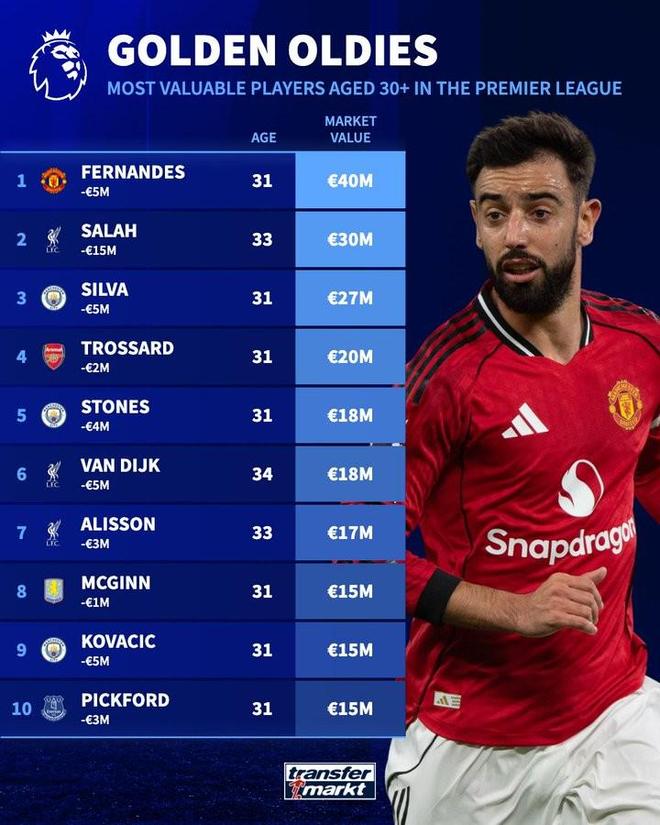 英超30+岁球员身价榜Top10:1、B费 4000万欧 下跌500万欧2、萨拉赫 3000万欧 下跌1500万欧3、B席 2700万欧 下跌500万欧4、特罗萨德 2000万欧 下跌200万欧5、斯通斯 1800万欧 下跌400万欧5、范戴克 1800万欧 下跌500万欧7、阿利松 1700万欧 下跌300万欧8、麦金 1500万欧 下跌100万欧8、科瓦契奇 1500万欧 下跌500万欧8、皮克福德 1500万欧 下跌300万欧【上咪咕独家看英超】相关资讯
