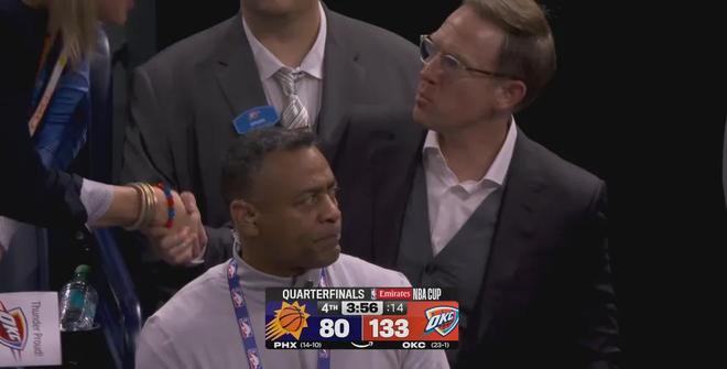 亚历山大上半场8中6砍下17分6助攻,太阳的防守对他几乎没有影响。第三节雷霆一度领先到43分,太阳有点输急眼了。格雷森-阿伦直接把霍姆格伦推翻在地,两队球员差点爆发冲突。雷霆这些年轻人还算比较冷静,事态没有扩大。裁判查看回放,给了阿伦二级恶意犯规,直接将其驱逐。前三节打完,雷霆110-72领先太阳38分。亚历山大15次投篮出手,砍下28+2+8+2,再次三节打卡。他已经连续96场比赛砍下20+,距离张伯伦的历史纪录还差30场比赛。