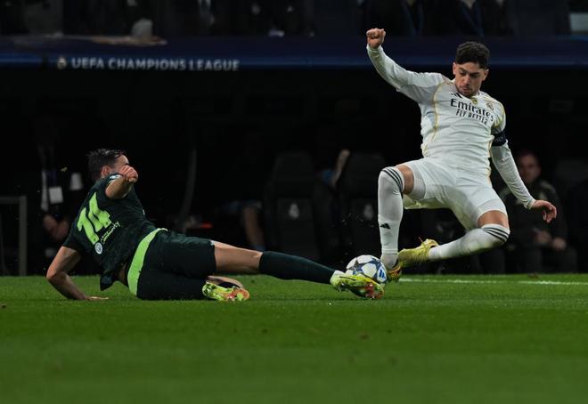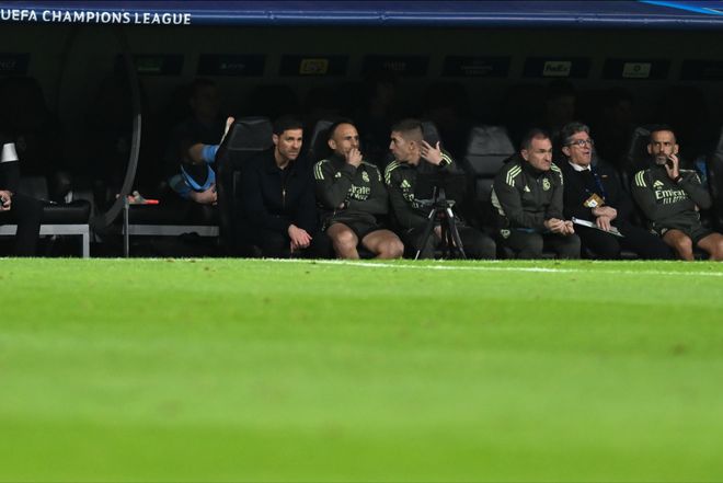 罗德里戈打破长达9个月、31场比赛的进球荒,这位早已不在阿隆索计划之中的球星,本赛季首次首发就为皇马取得了领先。这让场边的阿隆索,的确有些面色难堪;然而,让皇马更加难堪的,还在后面。8分钟过后,曼城就扳平了比分——成为罗德里戈破荒背景板的奥赖利在角球混战中高高跃起,将皮球狠狠地砸进库尔图瓦镇守的球门。
