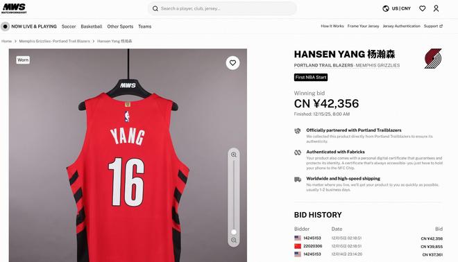 相关阅读:拍卖收藏杨瀚森NBA孟菲斯灰熊队波特兰开拓者