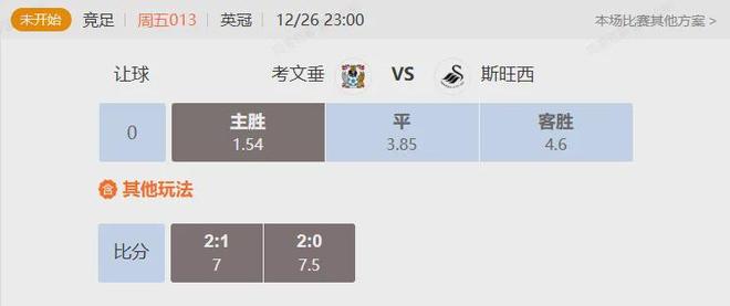 2.专家:杜帅宇竞足 周五013英冠考文垂VS斯旺西开赛时间:2025-12-26 23:00:00