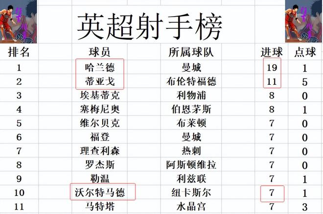 射手榜方面,哈兰德19球高居榜首,蒂亚戈11球位列第2,埃基蒂克和塞梅尼奥8球并列第3。沃尔特马德今天无力破门,还是和福登,理查利森等人7球刚好挤入前十。相关资讯