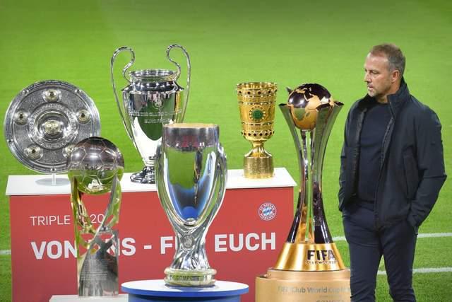 英雄莫问出处!弗里克执教的拜仁,德甲迅速稳住阵脚,提前2轮完成卫冕。德国杯一路杀进决赛,同样完成卫冕。最神奇的是在欧冠赛场,小组赛6战全胜晋级淘汰赛后,1/8决赛双杀切尔西,总比分7-1晋级;1/4决赛8-2血洗梅西、苏亚雷斯领衔的巴萨,创造了欧冠淘汰赛单场分差纪录;半决赛3-0完胜里昂;决赛对阵内马尔、姆巴佩领衔的巴黎,1-0获胜夺冠。拜仁创造了11战全胜夺冠的欧冠新纪录。这是拜仁队史第二次荣膺“三冠王”,接下来,弗里克又率队赢得了德国超级杯、欧洲超级杯和世俱杯,完成“六冠王”伟业。一个俱乐部,能参加的全部赛事就这六项,所以又叫“全冠王”。