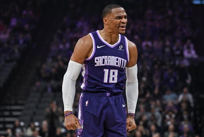 威少21分5板9助1断,超越魔术师,比肩乔丹独行侠队前往客场挑战国王队,浓眉缺阵,两队疯狂对轰,独行侠全队以48.1%的命中率轰进13记三分球,国王队以44.7%的命中率轰进17记三分球。独行侠状元弗拉格独砍23分+6篮板+5助攻,国王老将威少却以身作则给弗拉格上了一课。威少出战27分钟,16投8中(三分球9中5),攻下21分+5篮板+9助攻+1抢断的全面数据。据统计,此役过后,威少生涯助攻数来到10142次,超越魔术师(10141)独居NBA历史第7位;同时,威少生涯抢断数达到2000次,正式突破2000大关,成为NBA历史上第14位完成此成就的球员。此外,威少是NBA历史上第2位至少完成25000分2000抢断的后卫,第1位是乔丹。在另外一项数据统计中,这是威少连续3场比赛砍下20+,他成为NBA历史上首位在生涯第18个赛季完成此成就的球员,前无古人。
