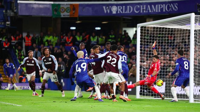 切尔西近期明显下滑,上轮战平纽卡斯尔后,蓝军最近5轮联赛仅仅取得1场胜利,拿到6个积分,距离争冠集团渐行渐远。第37分钟,里斯·詹姆斯开出角球,维拉门前一片混乱,佩德罗甚至没有注意到皮球,皮球砸在他的小腿上,弹进球门。