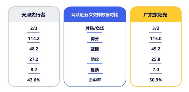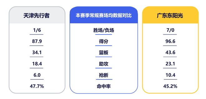 篮板控制力的争夺是本场对决的又一关键。天津队内线有詹姆斯坐镇,其以场均9.6篮板排在联盟第二,上赛季与广东队两次交手共摘下30篮板,统治力可见一斑。另一外援雷诺兹脚步灵活、弹跳出色,也能为球队提供篮板保障。广东队内线此战需轮换冲击、形成合力,尽量减少对方二次进攻机会,争取帮助球队在篮板端掌握主动权。此外,天津队快攻命中率和利用失误得分均排在第五位。本场比赛,广东队在对手高压防守下还需保持耐心,稳住自身进攻节奏,并注意控制失误。希望球队能够保持良好势头,继续打出属于我们的团队篮球!里 程 碑 数 据徐杰CBA生涯助攻总计为1345次,位列CBA历史助攻榜第34位,距离第33位的马尚·布鲁克斯(1351次)还差6次。两队数据对比