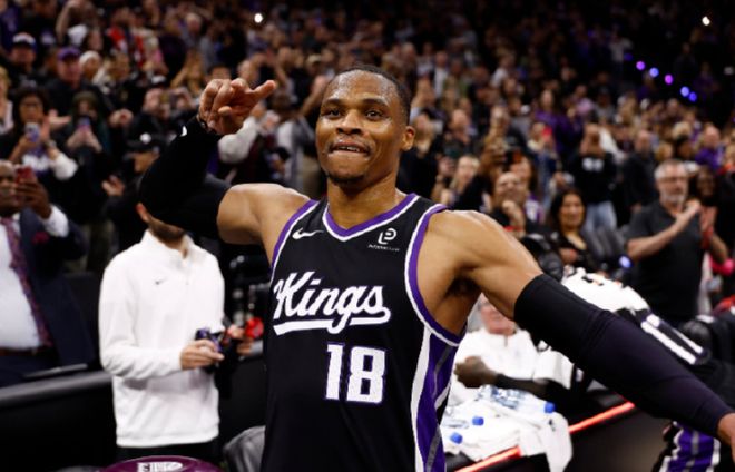 但最让人失望的球队还是国王队,管理层近几年可谓是谜一般的神操作,先后送走了哈利伯顿、福克斯等建队基石球星,却引进了已经在公牛队被证明过不成功的‘德罗赞、拉文’双人组,结果不言而喻,球队从季后赛常客一步步跌至如今的西部倒数第二,可谓是讽刺。不过,失败的国王队依旧还是有亮眼的球员,威少就是其中胜负欲最强的。事实上,在今年夏天,37岁的威少还一度无人问津,很多人都认为他的职业生涯似乎走到了尽头。但最终在休赛期快要结束时,国王队才姗姗来迟伸出了橄榄枝,以一份1年360万美金的非保障合同签下了威少。虽然这份合同与巅峰期的4000万年薪对比明显,而威少却用表现证明了自己的价值远超这份合同。