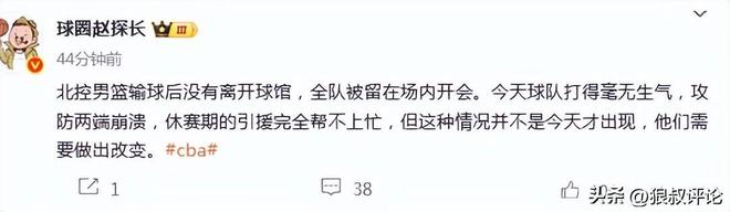 北京时间12月29日,CBA常规赛继续开打,北控男篮主场70-90不敌上海男篮,过去6场比赛,输的第5场,新赛季至今,北控男篮开局战绩为3胜5负。赛后,根据媒体人赵探长的报道,北控男篮输球后没有离开球馆,全队被留在场内开会。今天球队打得毫无生气,攻防两端崩溃,休赛期的引援完全帮不上忙,但这种情况并不是今天才出现,他们需要做出改变。