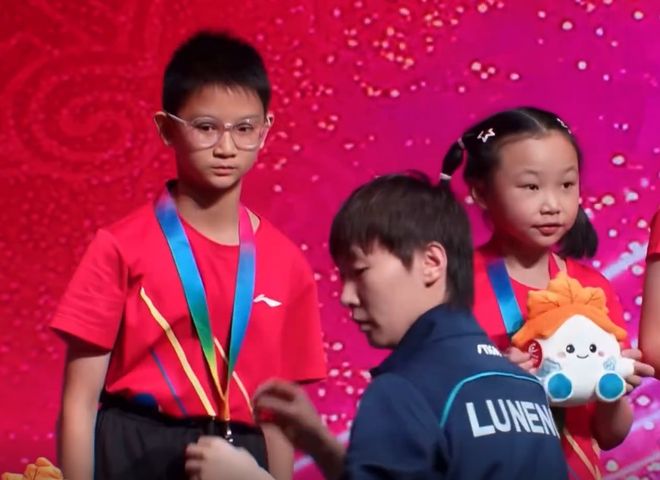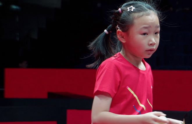 梳着两条辫子,一张萌娃脸很稚嫩,很可爱,陈思杨在赛场上却是狠辣无情,在乒超联赛总决赛期间,国少乒乓选拔赛也一并举行。陈思杨在9岁女单组和老对手吴扆依再次会师决赛,她以4比2击败对手,蝉联了国少选拔赛冠军。陈思杨在去年国少选拔赛杀进8岁组决赛,击败了吴扆依夺冠。这次,她还是击败吴扆依夺冠,统治了她这个年龄段的比赛。