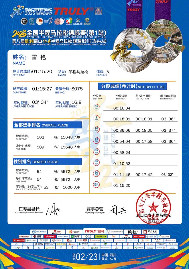 今年仁寿半马,雷艳以115完赛