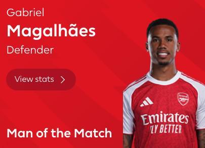 最终经过英超官网球迷投票,加布里埃尔以41%的的得票率当选全场最佳球员。