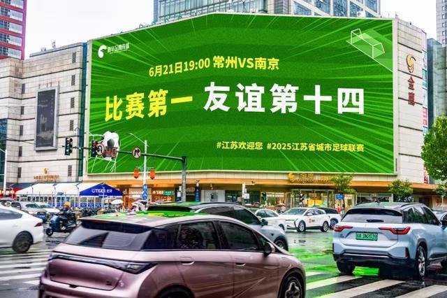 2025年6月,南京市中心一块大屏上打出“比赛第一 友谊第十四”的标语。南京市委网信办供图