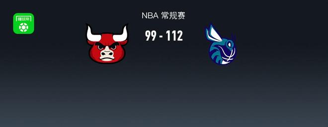 第四节公牛武切维奇拿下7分,黄蜂拉梅洛-鲍尔拿下7分,最终公牛99-112不敌黄蜂
