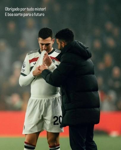 达洛特在社媒晒出他与阿莫林的同框照并配文:感谢您所做的一切,教练!祝您未来好运。